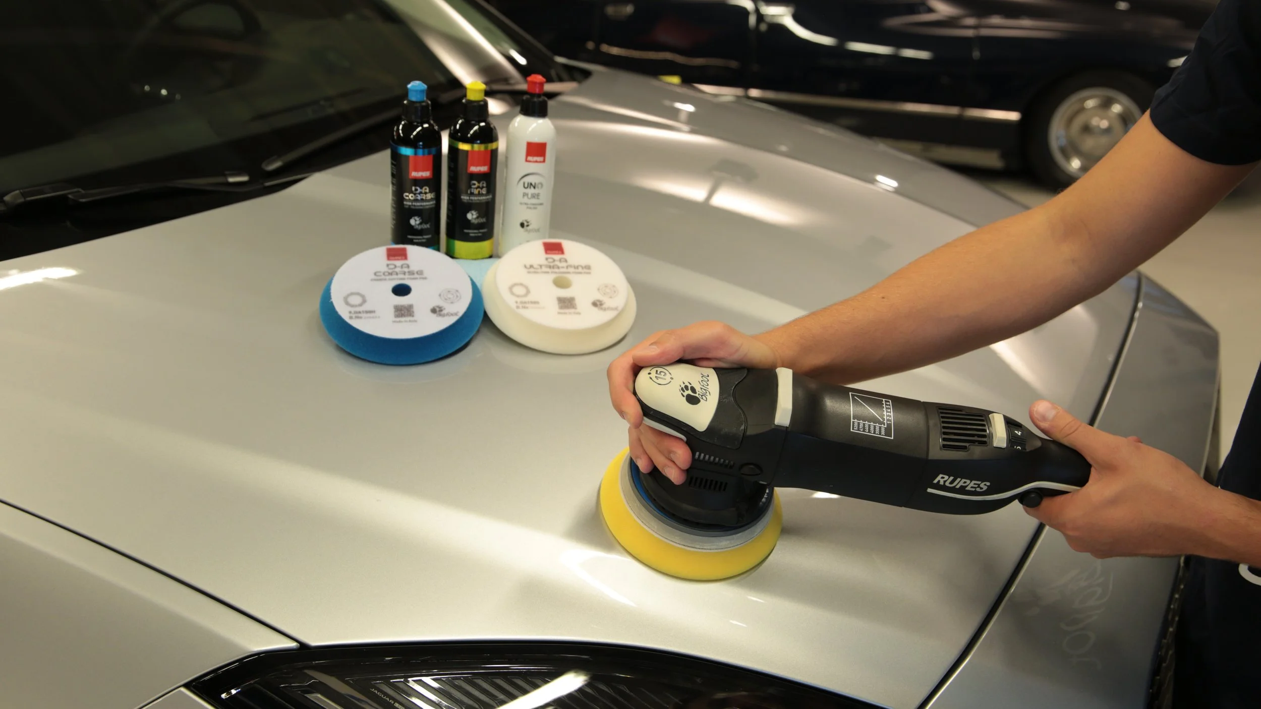 Once the desired correction is achieved using the cutting compound, switch to a finer polishing compound and pad combination.